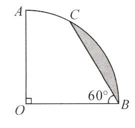 13. (2024·中山校级开学)如图,在扇形AOB中,$\angle AOB = 90^{\circ}$,弦CB与OB所成的$\angle CBO = 60^{\circ}$,且BC = 2,则弦CB与$\overset{\frown}{CB}$所围成的阴影部分的面积为