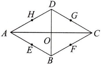 4. (RJ 九上 P124)如图,菱形 ABCD 的对角线AC,BD 相交于点 O,四条边 AB,BC,CD,DA 的中点分别为 E,F,G,H. 这四个点共圆吗? 若共圆,圆心在哪里?