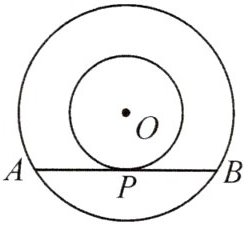 $\because$ 大圆的弦 $ AB $ 是小圆的切线, 点 $ P $ 为切点,