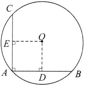 证明: $\because AB \perp AC, OD \perp AB$, $ OE \perp AC $,