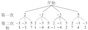 (3)补全树状图,并求嘉淇两次抽到的卡片上的数字之和为负数的概率.