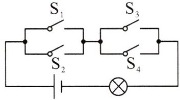 10. (2024·番禺区校级一模)如图,电路图上有4个开关$S_{1}$、$S_{2}$、$S_{3}$、$S_{4}$,电源、小灯泡和线路都能正常工作.若随机闭合2个开关,则小灯泡发光的概率为(