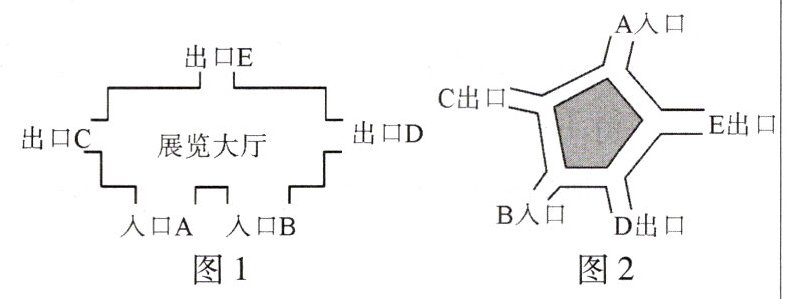 14. (1)(2024·长春模拟)如图1,某科技馆展览大厅有A、B两个入口,C、D、E三个出口,丽丽与欢欢相约去该科技馆,他们从同一入口B进入后分散参观,结束后,随机从一出口走出.请用画树状图法,求她们恰好从同一出口走出的概率;