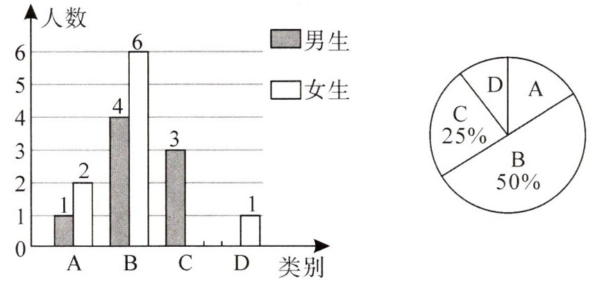 (1)本次调查中C类女生有______名,D类男生有______名,将条形统计图补充完整;