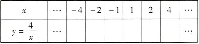 1. 用描点法画出反比例函数$y= \frac {4}{x}$的图象.