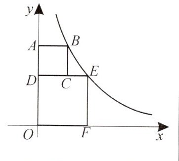 14. 如图,在平面直角坐标系xOy中,四边形ODEF和四边形ABCD都是正方形,点F在x轴的正半轴上,点C在边DE上,反比例函数$y= \frac {k}{x}(k≠0,x>0)$的图象过点B,E.若$AB= 2$,则k的值为