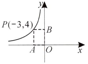 1. 例 如图,$P(-3,4)在反比例函数y= \frac{k}{x}$的图象上,过点$P作PA\perp x轴于点A$,$PB\perp y轴于点B$,则矩形$PAOB$的面积为