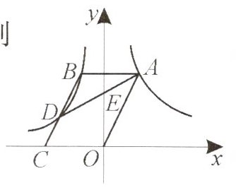 10. 例 如图,过反比例函数$y= \frac{6}{x}(x\gt0)的图象上一点A作x$轴的平行线,交双曲线$y= -\frac{3}{x}(x\lt0)于点B$,过点$B作BC// OA交双曲线y= -\frac{3}{x}(x\lt0)于点D$,交$x轴于点C$,连接$AD交y轴于点E$. 若$OC= 3$,则$\triangle AOE$的面积是