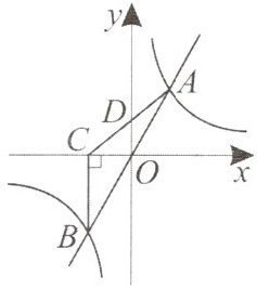 9. 【变式练习】如图,直线$y= kx(k\gt0)与双曲线y= \frac{1}{x}交于A$,$B$两点,$BC\perp x轴于点C$,连接$AC交y轴于点D$,下列结论:①点$A$,$B$关于原点对称;②$\triangle ABC的面积为1$;③点$D是AC$的中点;④$S_{\triangle AOD}= \frac{1}{2}$. 其中正确结论的个数为(