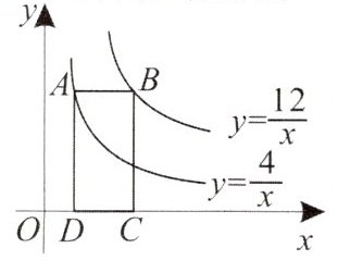 11. 【变式练习】如图,点$A在双曲线y= \frac{4}{x}$上,点$B在双曲线y= \frac{12}{x}$上,且$AB// x$轴,点$C$,$D在x$轴上,若四边形$ABCD$为矩形,则它的面积为(