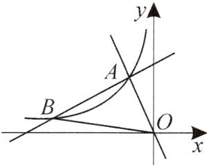 (2)设一次函数$y = \frac{1}{2}x + 5的图象与反比例函数y = \frac{k}{x}的图象的另一个交点为B$,连接$OB$,求$\triangle ABO$的面积;