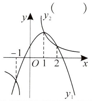 10. (2024·广州)函数$y_{1}= ax^{2}+bx+c与y_{2}= \frac {k}{x}$的图象如图所示,$y_{1},y_{2}均随着x$的增大而减小时,$x$的取值范围是(