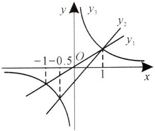 3. 如图, 正比例函数 $y_1 = mx$, 一次函数 $y_2 = ax + b$ 和反比例函数 $y_3 = \frac{k}{x}$ 的图象在同一直角坐标系中, 若 $y_3 > y_1 > y_2$, 则自变量 $x$ 的取值范围是 (