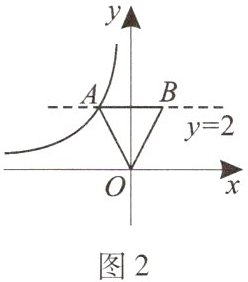 【观察发现】(3)如图 2,若直线$y= 2$(直线$y= 2是过点(0,2)$且平行于 x 轴的一条直线)交函数$y= \frac {2}{|x|}$的图象于 A,B 两点,连接 OA,OB,则$S_{△OAB}= $____;