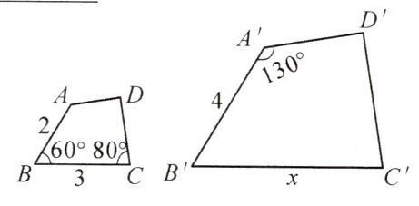 (1) $\because$ 四边形 $ABCD \sim$ 四边形 $A'B'C'D'$,$\angle A' = 130^{\circ}$,