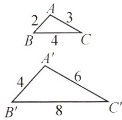 $\therefore \frac {AB}{A'B'}=\frac {BC}{B'C'}=\frac {CA}{C'A'}=2.$