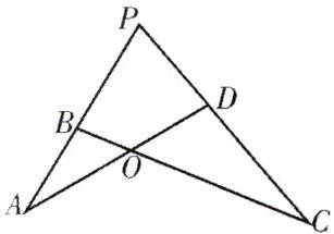 9. 如图,AD,BC 交于点 O,P 为 AB,CD 延长线的交点,且$PA\cdot PB= PC\cdot PD.$
