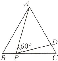 6. 如图,在等边$\triangle ABC$中,P为BC上一点,D为AC上一点,且$∠APD= 60^{\circ },AB= 2$.