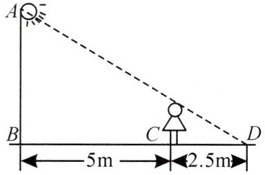 4. 如图,身高1.6m的小华站在距路灯杆5m的点C处,测得她在灯光下的影长CD为2.5m,求路灯的高度AB.