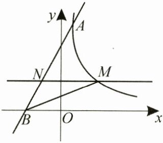 22. (2024·越秀区校级二模)如图,直线 $ y = 2x + 6 $ 与反比例函数 $ y = \frac{k}{x}(x > 0) $ 的图象相交于点 $ A(1,m) $,与 $ x $ 轴相交于点 $ B $,直线 $ y = n(0 < n < 6) $ 交反比例函数的图象于点 $ M $,交 $ AB $ 于点 $ N $.