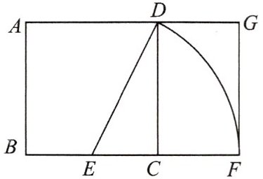 3.【跨学科拓展】黄金分割由于其美学性质,受到摄影爱好者和艺术家的喜爱,摄影中有一种拍摄手法叫做黄金构图法,其原理是:如图,在正方形 ABCD 的底边 BC 取中点 E,以点 E 为圆心,线段 DE 的长为半径作弧,其与底边 BC 的延长线相交于点 F,这样就把正方形 ABCD 延伸为矩形 ABFG,称为黄金矩形. 若 $ CF = 2 $,则 $ AB = $