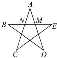 2.【知识延伸】人们把 $ \frac{\sqrt{5} - 1}{2} $ 叫做黄金分割数. 五角星是常见的图案,如图,在五角星中存在黄金分割数, $ \frac{MN}{NB} = \frac{BN}{BM} = \frac{BM}{BE} = \frac{\sqrt{5} - 1}{2} $,若 $ BE = 4 $,则 $ MN = $
