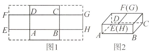 方案设计:如图 1,把硬纸板的四角剪去四个相同的小长方形,折成一个如图 2 所示的有盖长方体收纳盒,EF 和 HG 两边重合且无重叠部分.