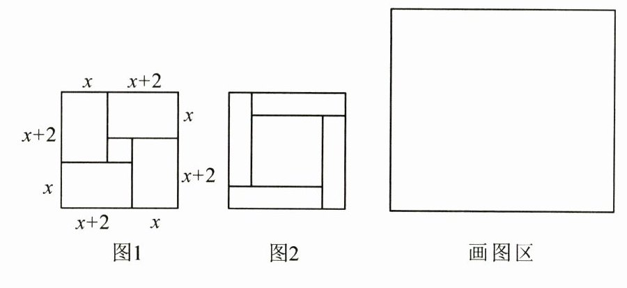 ②构图:画四个长为 $ x + 2 $,宽为 $ x $ 的矩形,按如图1所示构造一个“空心”大正方形;