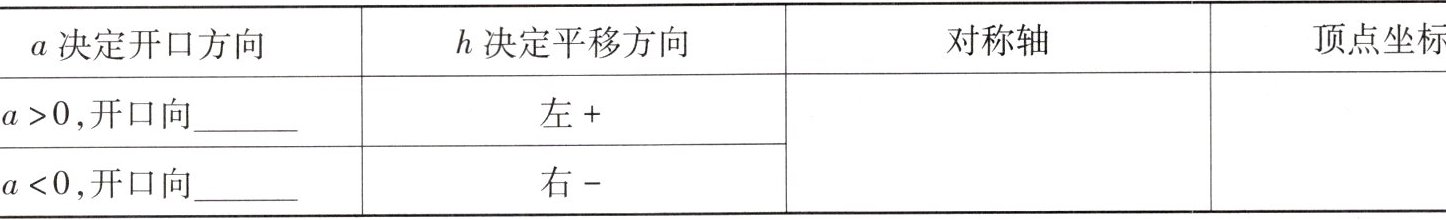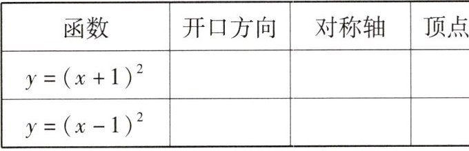 个单位长度,可得到抛物线$y = (x - 1)^2$.| 函数 | 开口方向 | 对称轴 | 顶点坐标 |