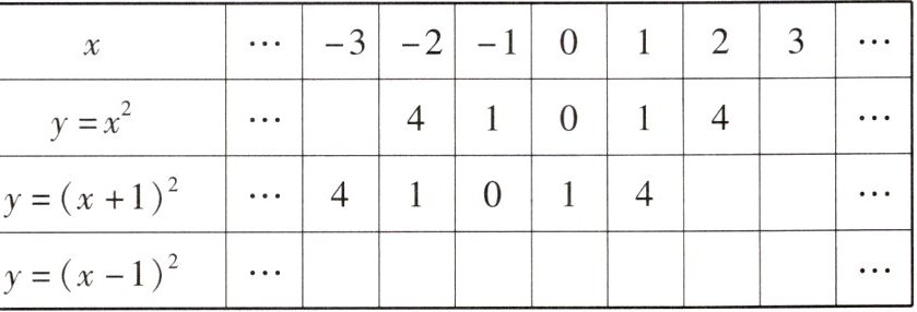 2. 画出二次函数$y = x^2$,$y = (x + 1)^2与y = (x - 1)^2$的图象.