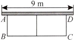 2. (2024·越秀区校级月考)学校规划了一块如图所示的矩形用地,用长为 24 m 的篱笆,一面靠墙(墙的最大可用长度为 9 m)围成中间隔有一道篱笆的中草药种植地. 设中草药种植地边 AB 的长为 x m,面积为$y m^{2}$.