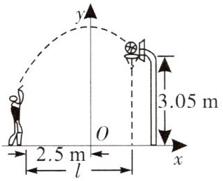 8.【易错题】某篮球运动员在某次投篮中,球的运动路线是抛物线$y= -\frac{1}{5}x^{2}+3.5$的一部分(如图所示),若命中篮圈中心,求该运动员与篮底的距离l.