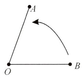 (2) 经过 $ 3 $ 小时,时针 $ OA $ 旋转到了 $ OB $,旋转角是 $ \angle $