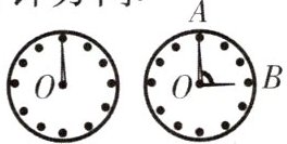 ;(2) 经过 $ 3 $ 小时,时针 $ OA $ 旋转到了 $ OB $,旋转角是 $ \angle $