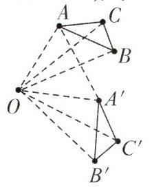 4. 如图,$ \triangle ABC $ 绕点 $ O $ 旋转 $ 65^{\circ} $ 得到 $ \triangle A'B'C' $,则: