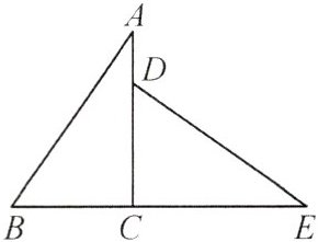5. 如图,在 $ \text{Rt} \triangle ABC $ 中,$ \angle ACB = 90^{\circ} $,$ \triangle DCE $ 是 $ \triangle ABC $ 绕点 $ C $ 顺时针旋转得到的,此时点 $ B $,$ C $,$ E $ 在同一直线上.