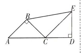 ∴$∠ACB=45°,AB=BC=1,AC=\sqrt{2}.$由旋转的性质,得$∠ECD=∠ACB=45°,CE=AC=\sqrt{2},$