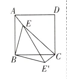 4. 例 (2024·中山开学改编)如图,在正方形$ABCD$中,$\triangle ABE绕点B顺时针旋转90^{\circ}到\triangle CBE'$的位置,若$AE= 1$,$BE= 2$,$CE= 3$,连接$EE'$.