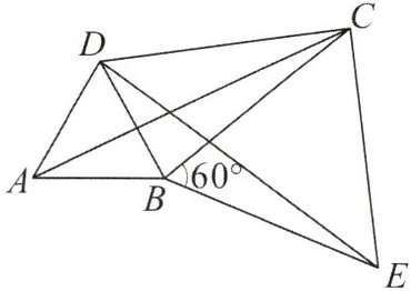 (2)如图,将$\triangle ABC绕顶点B按顺时针方向旋转60^{\circ}得到\triangle DBE$,连接$AD$,$DC$,$CE$,已知$\angle DCB = 30^{\circ}$。
