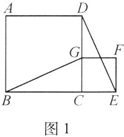 三个点,四边形$ABCD与四边形CEFG$都是正方形,连接$BG$,$DE$。