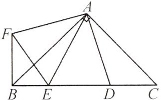 4.【变式练习】如图,在$Rt\triangle ABC$中,$AB = AC$,$D$,$E是斜边BC$上两点,且$\angle DAE = 45^{\circ}$,将$\triangle ADC绕点A顺时针旋转90^{\circ}$后,得到$\triangle AFB$,连接$EF$。下列结论: