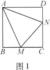 $\angle MAN绕点A$顺时针旋转,它的两边分别交$CB$,$DC$(或它们的延长线)于点$M$,$N$。