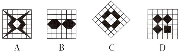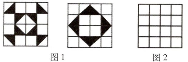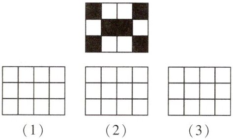 9. 例 请仿照如图所示的图案,在下列网格中分别设计出符合要求的图案。(注:①不得与原图案相同;②黑、白方块的个数要相同)