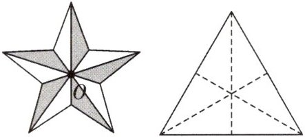 解:五角星绕着它的中心$O$至少旋转$\frac {360^{\circ }}{5}=72^{\circ }$能与自身重合,