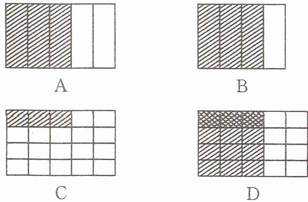 2. 下图中,可以表示$\frac{3}{5}÷4$计算过程的是(