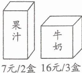 3.妈妈买了8盒果汁和6盒牛奶,应付多少钱?