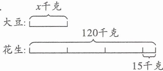 2. 水果店上午卖出橘子和香蕉共 120 kg,其中卖出橘子的质量比香蕉的$\frac{2}{3}$少 15 kg。卖出橘子和香蕉各多少千克?(6 分)