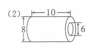 (2)外圆柱体积:$3.14×(8÷2)^2×10 = 3.14×16×10 = 502.4$($cm^3$)