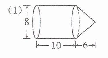 (1)圆柱体积:$3.14×(8÷2)^2×10 = 3.14×16×10 = 502.4$($cm^3$)