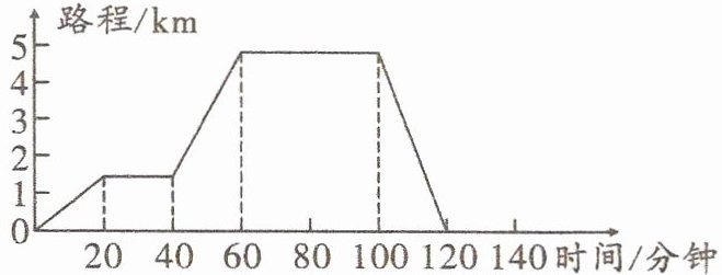 5.小华骑车从家去相距5 km的图书馆借书,从下面的折线统计图可以看出: